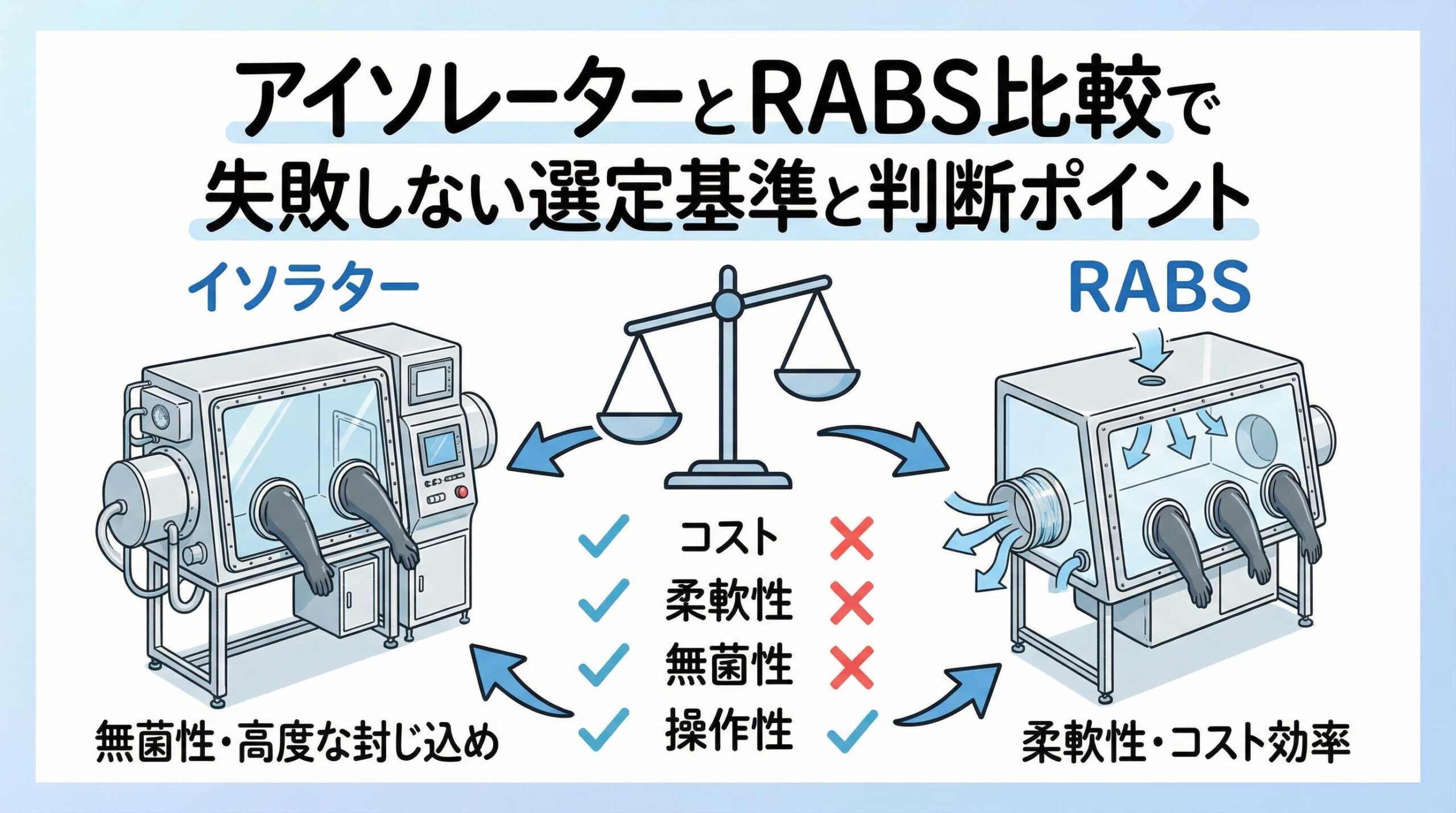 アイソレーターとRABS、どちらを選定すべきかは、単一の正解が存在するものではありません。